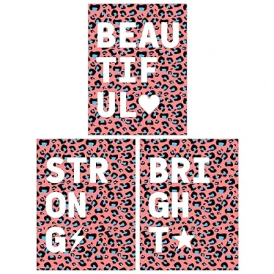 Wee Blue Coo Pack of 3 Beautiful Strong Bright Typography on Pink Leopard Pattern Unframed Wall Art Living Room Prints Set