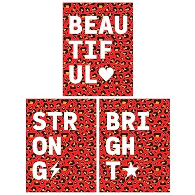 Wee Blue Coo Pack of 3 Beautiful Strong Bright Typography on Red and Orange Leopard Pattern Motivational Unframed Wall Art Living Room Prints Set