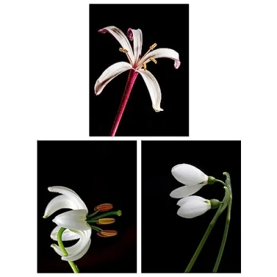 Wee Blue Coo Pack of 3 Macro Photo Flower Bloom Petal Anther and Stem Photography on Black Unframed Wall Art Living Room Prints Set