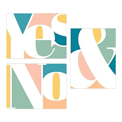 Wee Blue Coo Pack of 3 Symbol Typography Words Yes And No Pastel Colour Unframed Wall Art Living Room Prints Set