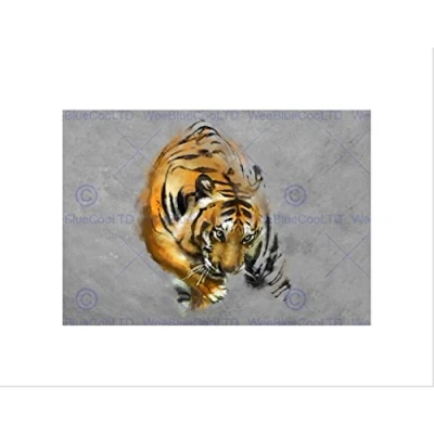 Wee Blue Coo Paint Drawing Animal Big Cat Tiger Stripes Predator Mist Wall Art Print