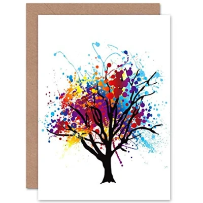 Wee Blue Coo Paint Splat Abstract Tree Blank Greetings Card