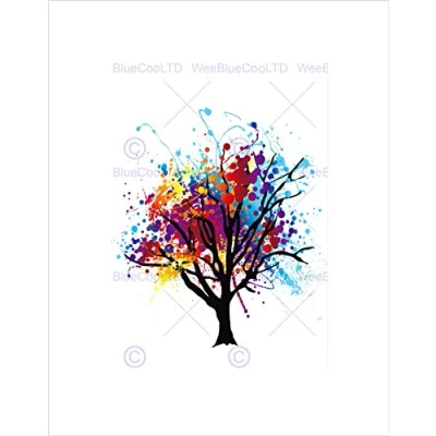 Wee Blue Coo PAINT SPLAT ABSTRACT TREE RAINBOW BLACK FRAME FRAMED ART PRINT PICTURE B12X9387