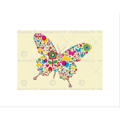 Wee Blue Coo Painting Abstract Butterfly Shape Inset Colour Objects Wall Art Print