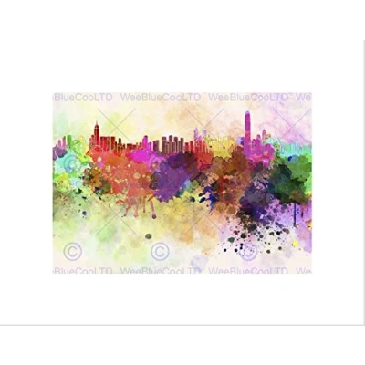 Wee Blue Coo Painting Abstract Cityscape Hong Kong Paint Splash Skyline Wall Art Print