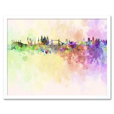 Wee Blue Coo Painting Abstract Cityscape London England Skyline Paint Splash Art Print Framed Poster Wall Decor 12X16 Inch