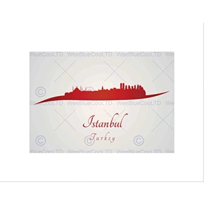 Wee Blue Coo Painting Abstract Cityscape Red Istanbul Turkey Wall Art Print