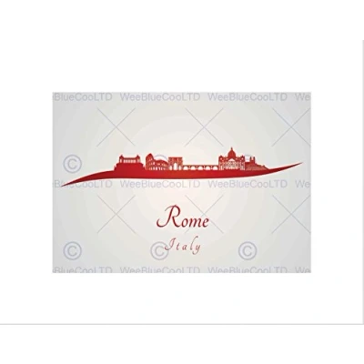Wee Blue Coo Painting Abstract Cityscape Red Rome Italy Wall Art Print