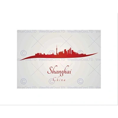 Wee Blue Coo PAINTING ABSTRACT CITYSCAPE RED SHANGHAI CHINA BLACK FRAMED ART PRINT B12X8601