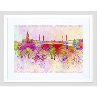 Wee Blue Coo Painting Abstract Cityscape Sky Mecca Saudi Arabia Framed Wall Art Print