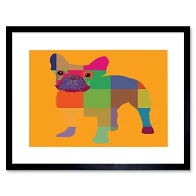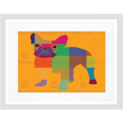 Wee Blue Coo Painting Abstract French Bulldog Portrait Framed Wall Art Print