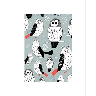 Wee Blue Coo PAINTING ABSTRACT OWL PATTERN DESIGN SNOWFLAKE FRAMED ART PRINT B12X8485