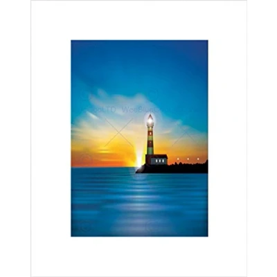 Wee Blue Coo PAINTING ABSTRACT SEASCAPE LIGHTHOUSE SUNSET FRAMED ART PRINT B12X8411