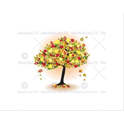 Wee Blue Coo PAINTING ABSTRACT TREE DESIGN AUTUMN LEAVES NATURE FRAMED PRINT B12X8236