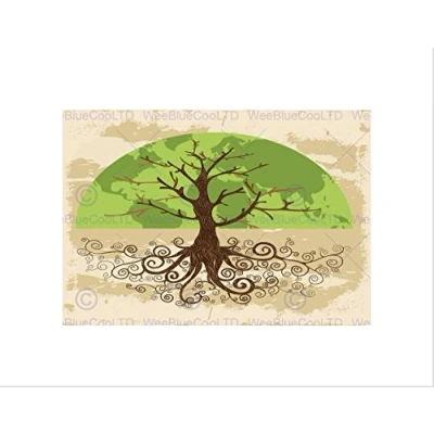 Wee Blue Coo PAINTING ABSTRACT TREE ROOT BRANCH EARTH DESIGN FRAMED ART PRINT B12X8365