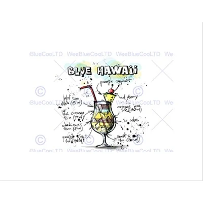 Wee Blue Coo Painting Alcohol Cocktail Recipe Hawaii Wall Art Print