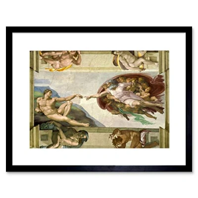 Wee Blue Coo Painting Allegory Michelangelo Creation Adam Framed Wall Art Print