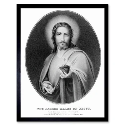 Wee Blue Coo Painting Allegory Portrait Message Jesus Sacred Heart Art Print Framed Poster Wall Decor 12X16 Inch