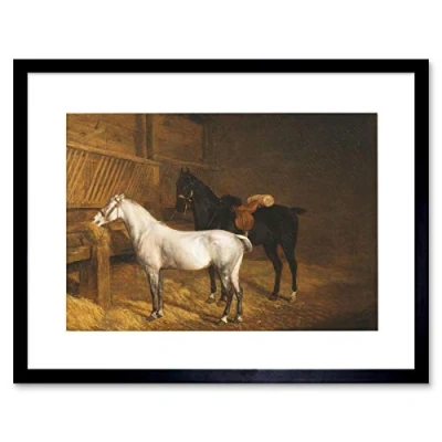 Wee Blue Coo PAINTING ANIMAL LAURENT AGASSE TWO HORSES IN STABLE FRAMED ART PRINT B12X12779