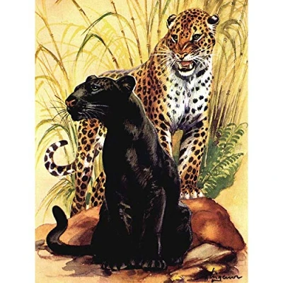 Wee Blue Coo Painting Animal Leopard Black Spotted Cat Jungle Art Print Poster Wall Decor 12X16 Inch