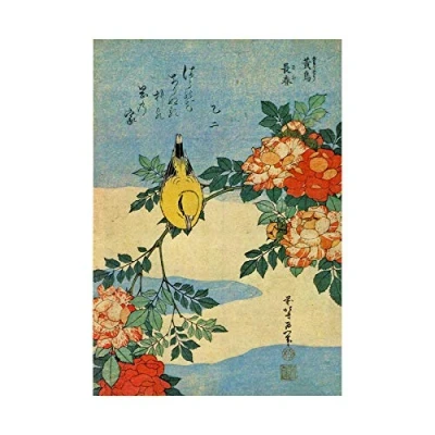 Wee Blue Coo Painting Animals Bird Yellow Finch Flowers Japanese Japan Wall Art Print