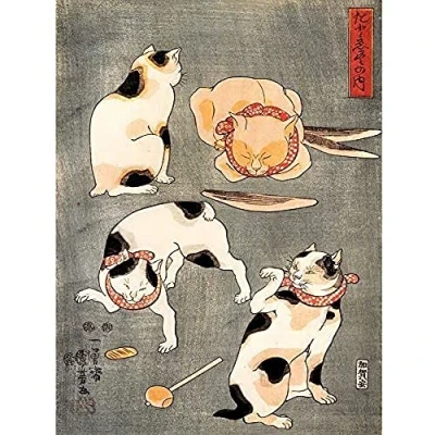 Wee Blue Coo PAINTING ANIMALS CATS DIFFERENT POSES UTAGAWA KUNIYOSHI JAPAN POSTER 18x24 INCH LV2316