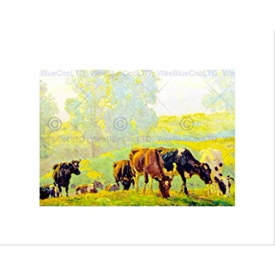 Wee Blue Coo Painting Animals Cattle Cow Field Farm Pasture Rural Wall Art Print