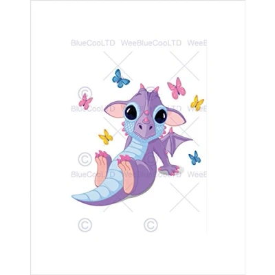Wee Blue Coo Painting Baby Dragon Butterflies Cute Children Kids Wall Art Print