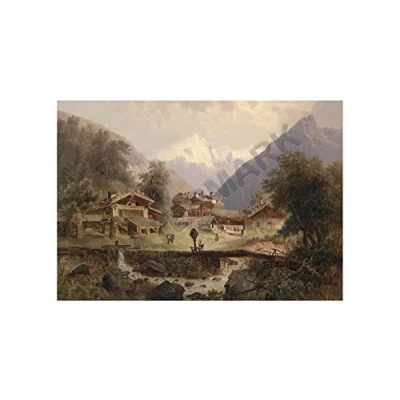 Wee Blue Coo Painting Barbarini Alpine Mountain Village Panorama Wall Art Print