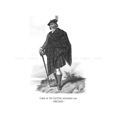 Wee Blue Coo Painting Book Clans Scottish 1845 Macleod Black White Wall Art Print