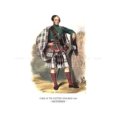 Wee Blue Coo Painting Book Clans Scottish 1845 Macpherson Colour 12x16 Wall Art Print