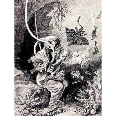 Wee Blue Coo Painting Book Deep Sea Diver Fish Retro Diving Suit Ray Art Print Poster Wall Decor 12X16 Inch
