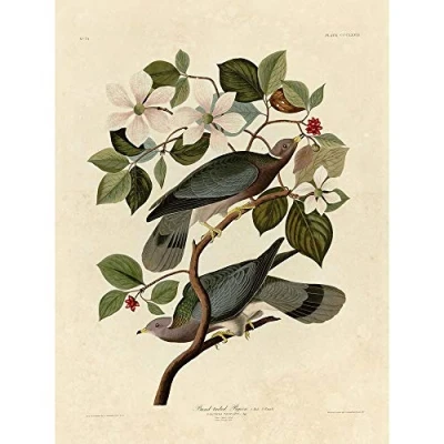 Wee Blue Coo Painting Book Page Birds America Audubon Band Tail Pigeon Art Print Poster Wall Decor 12X16 Inch