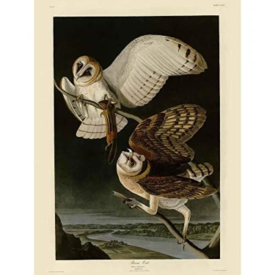 Wee Blue Coo Painting Book Page Birds America Audubon Barn Owl Art Print Poster Wall Decor 12X16 Inch