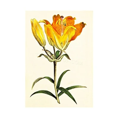 Wee Blue Coo PAINTING BOTANICAL FLOWER LILY PETAL ORANGE YELLOW PRINT F12X4485