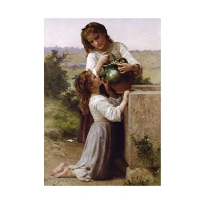 Wee Blue Coo Painting Bouguereau At Fountain Wall Art Print