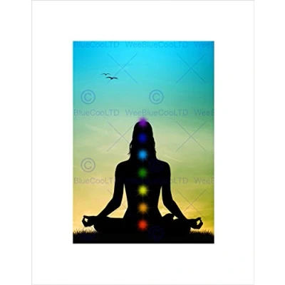 Wee Blue Coo Painting Buddhist Lotus Chakras Meditation Wall Art Print