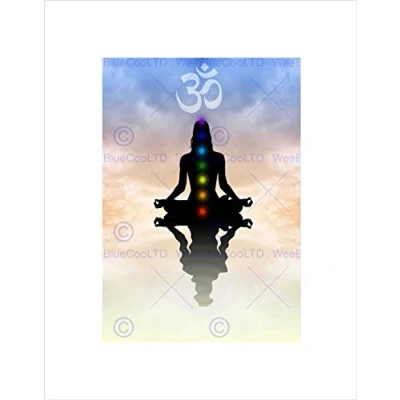 Wee Blue Coo PAINTING BUDDHIST LOTUS CHAKRAS PEACE SYMBOL BLACK FRAMED ART PRINT B12X13497