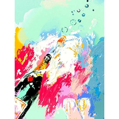 Wee Blue Coo Painting Champagne Bottle Plume Fizz Cork Pop Fizzy Bubbles Art Print Poster Wall Decor 12X16 Inch