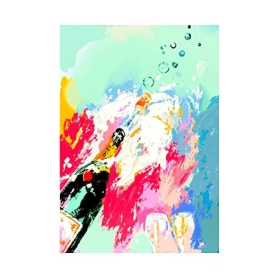 Wee Blue Coo Painting Champagne Bottle Plume Fizz Cork Pop Fizzy Wall Art Print