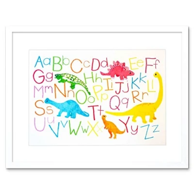 Wee Blue Coo Painting Children Kids Dinosaur Alphabet Colour Framed Art Print Picture F12X747