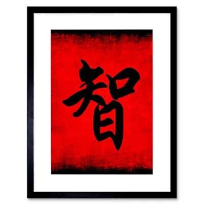 Wee Blue Coo Painting Chinese Calligraphy Wisdom Symbol Framed Wall Art Print
