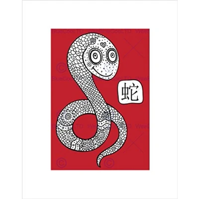 Wee Blue Coo PAINTING CHINESE ZODIAC SIGN MOSAIC COOL SNAKE BLACK FRAMED ART PRINT B12X8512
