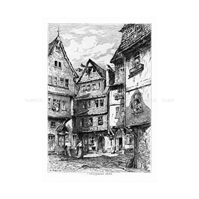 Wee Blue Coo Painting City Frankfurt Bagge Tanner Lane Lohergasse Wall Art Print