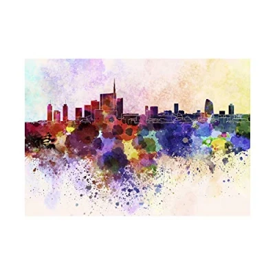Wee Blue Coo Painting Cityscape Colour Splash Milan Skyline Wall Art Print