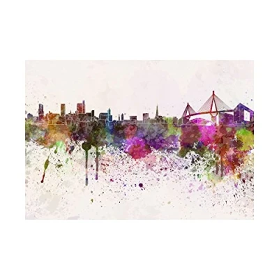 Wee Blue Coo Painting Cityscape Hamburg Skyline Paint Splash Wall Art Print
