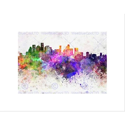Wee Blue Coo PAINTING CITYSCAPE HOUSTON SKYLINE PAINT SPLASH FRAMED ART PRINT MOUNT B12X13519