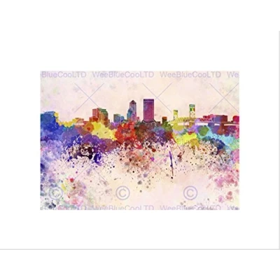Wee Blue Coo PAINTING CITYSCAPE JACKSONVILLE SKYLINE PAINT SPLASH FRAMED ART PRINT B12X13520