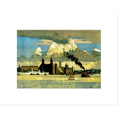 Wee Blue Coo PAINTING CITYSCAPE LIVERPOOL ENGLAND RIVER MERSEY SHIP UK FRAMED PRINT B12X12201