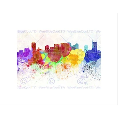 Wee Blue Coo Painting Cityscape Nashville Skyline Paint Splash Wall Art Print
